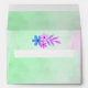 Purple and green gradient parchment floral design showcases a purple and green parchment colour on the envelope with a blue and purple flower on the inside flap as well as the back flap. Address information can also be written on the back flap, purchase yours today!