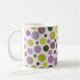 A modern and stylish original design of polka dots in shades and tints of purple and green. The colours and polka dots give this mug a retro vibe. A nice mug for those who appreciate mid-century modern flair. Other items in this design featured in my store.