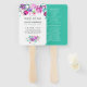 Purple and mint roses and peonies flower wedding program fans with hues of ultra violet, burgundy, blush pink and plum.