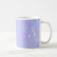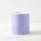 A gorgeous design of metallic-looking pink, purple and turquoise flakes on a purple background.