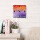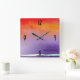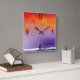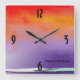 Contemporary clock design with abstract design in orange, purple, and aqua. Change or delete text as desired. Trendy look for dorm room or urban condo.