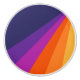 Abstract illustration of diagonal retro style stripes in purple, blue, orange and yellow colours on dark blue background