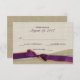 The look of burlap with a pretty purple and orange ribbon is printed on this elegant country style response card to match our invitations. All parts of this invitation are printed. There is no real ribbon or burlap attached.