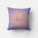 This decorative pillow combines a soft peach-toned centre with a bold purple background, beautifully bordered by an ornate black damask pattern. At the heart of the design, an editable monogram initial and customisable surname are displayed, making it easy to create a personalised accent piece. The rich interplay of purple, peach, and black creates a stylish and modern yet elegant look.