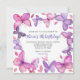 A simple and trendy purple and pink girl's butterfly custom birthday invitation.