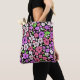 Purple and Pink Flowers and Petals Pattern Black Tote Bag