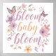 Celebrate new beginnings and beautiful growth with this elegant "Bloom baby bloom" graphic. Featuring a lovely gold script surrounded by a delicate wreath of purple and pink watercolor flowers and graceful butterflies, this design is full of gentle charm. It's a perfect, inspiring piece for a baby girl's nursery, a baby shower, or as a sweet reminder for anyone on a journey of personal growth.