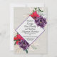 Bohemian themed stylish wedding invitation done in an grayish ivory with faux texture. A purple framed white diamond shaped text area, has purple and red flowers with pampas grass, decorating the top and bottom. Personalise all the text for your special day. Matching products are available.