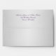 This purple and silver A7 envelope matches the wedding invitation shown below and is designed to fit the 5x7 invitation. Customise it to have your own return address on it.