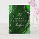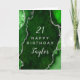 This elegant and glamourous birthday card can be personalised with a name or title such as mum, daughter, granddaughter, niece, friend etc. The design features a green agate marble background with faux silver glitter accents. The text combines handwritten script and modern sans serif fonts for a classy and sophisticated look.