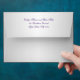 This purple and silver damask A7 envelope matches the wedding invitation shown below and is designed to fit the 5x7 invitation and thank you card. Customise it to have your own return address on it.