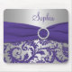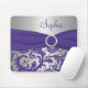 This elegant looking purple and silver damask mousepad has a matching faux ribbon and crystal brooch. Customise it with your own name, monogram, or other text.