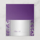 Elegant purple and silver wedding folded place cards. A modern faux silver swirl damask pattern. Designs are flat printed illustrations/graphics - NOT ACTUAL SILVER.