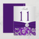 This monogrammed purple and silver damask table number postcard with FAUX ribbon and jewelled brooch matches the wedding invitation shown below. You must change the number 11 to each number that you need, add it to your cart, and then come back and repeat the process with each number that you need. Quantity discounts may apply once you add all the items to your cart. If you have any questions, contact niteowlstudio@gmail.com.