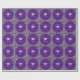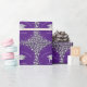 This modern design features a graduation hat and confetti in silver on a background of purple with white text.