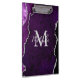 This clipboard features an elegant and glamourous agate marble background with geode gemstone detailing and faux silver glitter accents. The monogram combines handwritten script and modern sans serif fonts for a classy and sophisticated look. This will make the ideal gift as it can be customised with a name and initial. The deep purple hues make it perfect for autumn fall and winter.