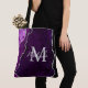 This bag features an elegant and glamourous agate marble background with geode gemstone detailing and faux silver glitter accents. The monogram combines handwritten script and modern sans serif fonts for a classy and sophisticated look. This will make the ideal gift as it can be customised with a name and initial. The deep purple hues make it perfect for autumn fall and winter.