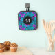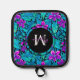 Pretty elegant pattern of purple, blue, teal, turquoise and green flowers and foliage personalised initial and last name potholder. Makes a great wedding or housewarming gift.