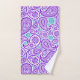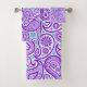 Elegant vintage paisley in purple with turquoise-blue over white background.