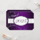 Purple and white graduation invitation with light and dark purple floral and a white ribbon going across showing the year of graduation. The back of the card is purple with white font for people to fill in the graduation announcements.