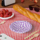 Purple and White Chequered Chequerboard Pattern Paper Plate