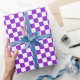 Wrapping paper with a purple and white chequered pattern. Perfect for any occasion. Customisable.