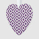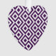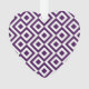 This bold, geometric, regal purple and white pattern is an original ornamental design. Purple diamonds with white borders are surrounded by royal purple meanders which angle around them. White zigzags separate the winding purple paths and offset diamonds.
