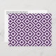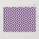 This bold, geometric, regal purple and white pattern is an original ornamental design. Purple diamonds with white borders are surrounded by royal purple meanders which angle around them. White zigzags separate the winding purple paths and offset diamonds.