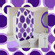 A pattern of overlapping circles in various shades of purple is presented against a white background. The circles create a repetitive and abstract design, giving the appearance of a digital or geometric wallpaper.
