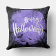 Purple and White Simple Happy Halloween Throw Pillow
