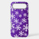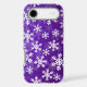 A stylish purple and white snowflake pattern is featured on this holiday themed design. Perfect for Christmas!