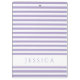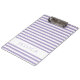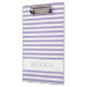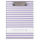 Purple and white striped pattern clipboard featuring a personalised name print on front and back. For matching purple striped stationery items and more colour options check out the full collection below and visit Dots & Stripes Pattern Design Studio by Maggie B for more personalised stationery.