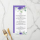 Elegant boho wedding menu featuring a top and bottom border of vivid purple anemones and lush greenery. The back of the card is a shade of purple that matches the anemones. *** - NOTE - *** If you need help with this invitation or for custom requests you need my help with, do not place this merchandise in your cart. Instead, email me your request at shutterbug600@yahoo.com. I am an independent designer that lists my work for sale through Zazzle; however, they fulfil all aspects of the manufacturing and shipping of said designs. I do not have access to your account and can't see what you have done. Answers to your enquiries can be found at https://www.zazzle.com/about/ask Click the link so that questions about your order or shipping can be answered by Zazzle's wonderful Customer Care team members. Also, CHAT is not live, but I try to answer within 24 hours.