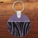 Custom Basic Button Keychain Template has a black and purple zebra or tiger stripes pattern.
