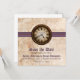 This Antique Clock Save the Date Announcement features a vintage timepiece prominently centred on top of a metal ball chain and sleek purple striped border. The distressed look of the grungy paper texture background completes the antiqued feel of this unique design. This offbeat save the date invitation is perfect for announcing your vintage or steampunk inspired wedding. Easy to customise, simply add your wedding details in the spaces provided. Click on "Customise It" to find additional options to personalise this design.