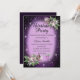 Purple Any Age Bling Floral Bird Birthday Invitation