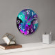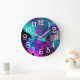Purple Aqua Turquoise Beautiful Abstract Fluid Art Large Clock