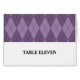 Classic and elegant Argyle Wedding Table Number Card with a simple purple diamond argyle pattern background. Easy to customise with your wedding details. For more customisation options, click on the Customise It button.