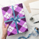 Purple and white squares on a diagonal create an updated argyle pattern perfect for any occasion.