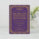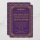 These wedding invitations feature a purple and gold colour palette, a geometric frame, geometric patterns, and other stylistic details all inspired by Art Deco and the roaring twenties. You can customise the sample text fields to your liking.