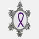 The purple awareness ribbon holiday charm art ornament features the painting of a purple awareness ribbon. The purple awareness ribbon art can be customised with personalised messages to make great awareness cause ornaments or pendants for fundraisers, awareness Christmas or holiday gifts, or awareness ribbon merchandise other special cause events or occasions. A purple awareness ribbon colour means support for Pancreatic Cancer, Crohn's Disease and Colitis, Alzheimer's Disease, Anti-Gay Bullying (Spirit Day), Cancer Survivor (All Kinds), Domestic Violence, Lupus, Sjögren's Syndrome, Chronic Pain, Leiomyosarcoma, Arnold-Chiari Malformation, Migraines, Cystic Fibrosis, Retinitis Pigmentosa, and Fibromyalgia. Let this purple awareness ribbon support these causes!