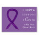 The greeting or note card features the picture of a purple awareness ribbon painting. The card states "I Hope & Support a Cure for <Add Your Cause Here>" Add your own optional words or message to the greeting card for personalised angel art cause awareness notecards! You can also remove the text for an art only note cards. A purple awareness ribbon colour means support for Pancreatic Cancer, Crohn's Disease and Colitis, Alzheimer's Disease, Anti-Gay Bullying (Spirit Day), Cancer Survivor (All Kinds), Domestic Violence, Lupus, Sjögren's Syndrome, Chronic Pain, Leiomyosarcoma, Arnold-Chiari Malformation, Migraines, Cystic Fibrosis, Retinitis Pigmentosa, and Fibromyalgia. Let this purple awareness ribbon support these causes! The purple awareness ribbon painting art greeting cards can be customised with personalised messages to make great awareness cause art cards for fundraisers, awareness gifts, or other special events. Give this art card as an awareness ribbon gift for any occasion.