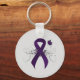 Purple ribbon with a butterfly, concentric circles, and swishes. Wearing the ribbon in February for Macular Degeneration Awareness. In April for Animal Abuse Awareness, Sarcoidosis Awareness, Sjogren's Syndrome Awareness, Testicular Cancer. May for Cystic Fibrosis Awareness, Fibromyalgia Awareness, Lupus Awareness. September for ADHD Awareness, Thyroid Cancer Awareness, Victims of 9/11 - WTC Awareness Ribbons. November for Alzheimer's Disease Awareness, Colitis Awareness Ribbons, Crohn's Disease Awareness, Domestic Violence Awareness, Epilepsy Awareness, Homelessness Awareness, Pancreatic Cancer Awareness, Pancreatitis (Chronic) Awareness. The purple ribbon also stands for ADD Awareness, Anti-Violence Awareness, Arnold Chiari Malformation Awareness, Leimyosarcoma Awareness, Mucolipidoses Awareness, Mucopolysaccharidosis Awareness, No Unattended Kids in Cars Awareness, Religious Tolerance Awareness, LGBT hate crime awareness, bullying and suicide prevention.