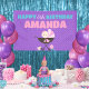 Baby Doll Happy Birthday Banner in Purple, Pink and Teal Blue
