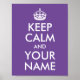 Change the text design on this classic vintage "Keep Calm and Carry On" poster design. White crown and block text. Create a parody poster for your wall. You can change the purple background colour.