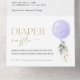 Invite friends and family in style and set the tone for your special day with this charming baby shower invitation. Design features purple balloon with eucalyptus leaves on white background.