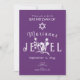 Modern purple bat mitzvah invitation with beautiful white typography has wild flowers that you can move and resize with your lettering. Botanical artwork can be colour changed along with your lettering. Easily change the background colour on this simple and unique bat mitzvah invitation. This template is easily customised for any plum, wild berry, lavender, purple birthday party themes.