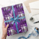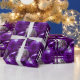 Stylish wrapping paper featuring a collection of glittering purple and silver Christmas baubles. A customisable design for you to personalise with your own text, images and ideas. Image created using an original photograph and digital techniques.