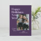Didn't get around to sending your Christmas cards in time? This New Year card has you covered. This festive purple card features the words "Happy Holidays" with holidays crossed out and New Year written below. It has space for a single photo on the front and two more photos on the back. It's never too late to send a little love and holiday cheer.
