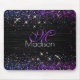 Purple black brushed metal glitter monogram Mouse pad. Add a touch of glitter and glam to your home office or dorm with this elegant personalised mouse pad. To make it extra special, it is also monogrammed and personalised. click the "customise further" link and use the design tool to modify the design if you like. Show off your personal style, look fashionable, trendy and feel stylish around your friends with a unique design on your mouse pad or customise it over another product of your choice. A unique girly gift for birthday, holidays and any special occasion. Whether for valentines day, Christmas or as a gift in general it makes a great gift idea for any girl who loves modern sparkly elegance. PLEASE NOTE: These are flat printed graphics - no real glitter, jewels or raised parts.